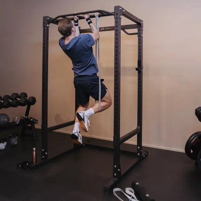Abilica PowerRack 40 er utstyrt med pullups håndtak med en rekke ulike grep og 2 håndtak for feste av strikk. Med et fotavtrykk på 124 x140 cm har du god plass inne i racket til å gjøre alle øvelser som enten gjøres stående eller som krever benk.